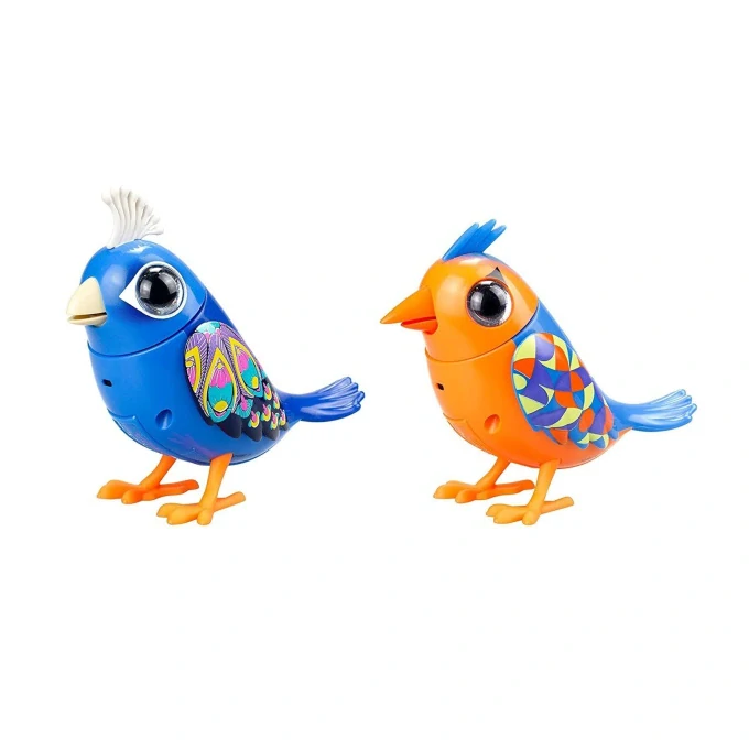 Interaktivní štěbetání a zpívání dvou ptáčků. Ptáčky si můžeš kouzelně spojit pomocí technologie Magictunes, budou spolu zpívat a pohybovat se jako sbor. Součástí balení jsou 2 klícky na přenášení ptáčků. Velikost 11 cm. Potřebné baterie: 1x AAA (součástí balení jsou baterie na prezentační účely).